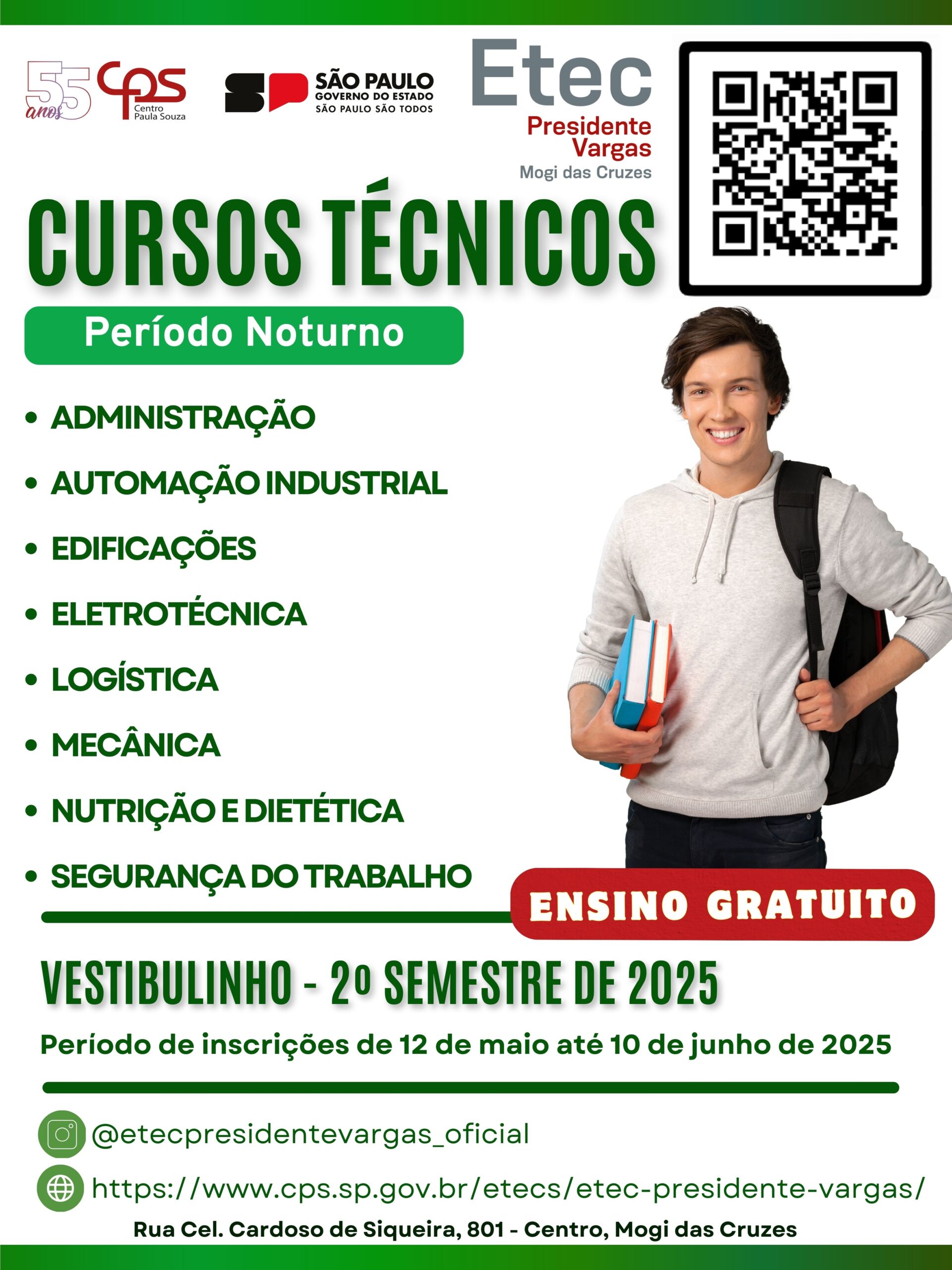 A ETEC Presidente Vargas abre inscrições para cursos técnicos noturnos do 2º semestre de 2025. Inscrições de 12 de maio a 10 de junho. Cursos com foco em qualificação profissional, aprendizado prático e...